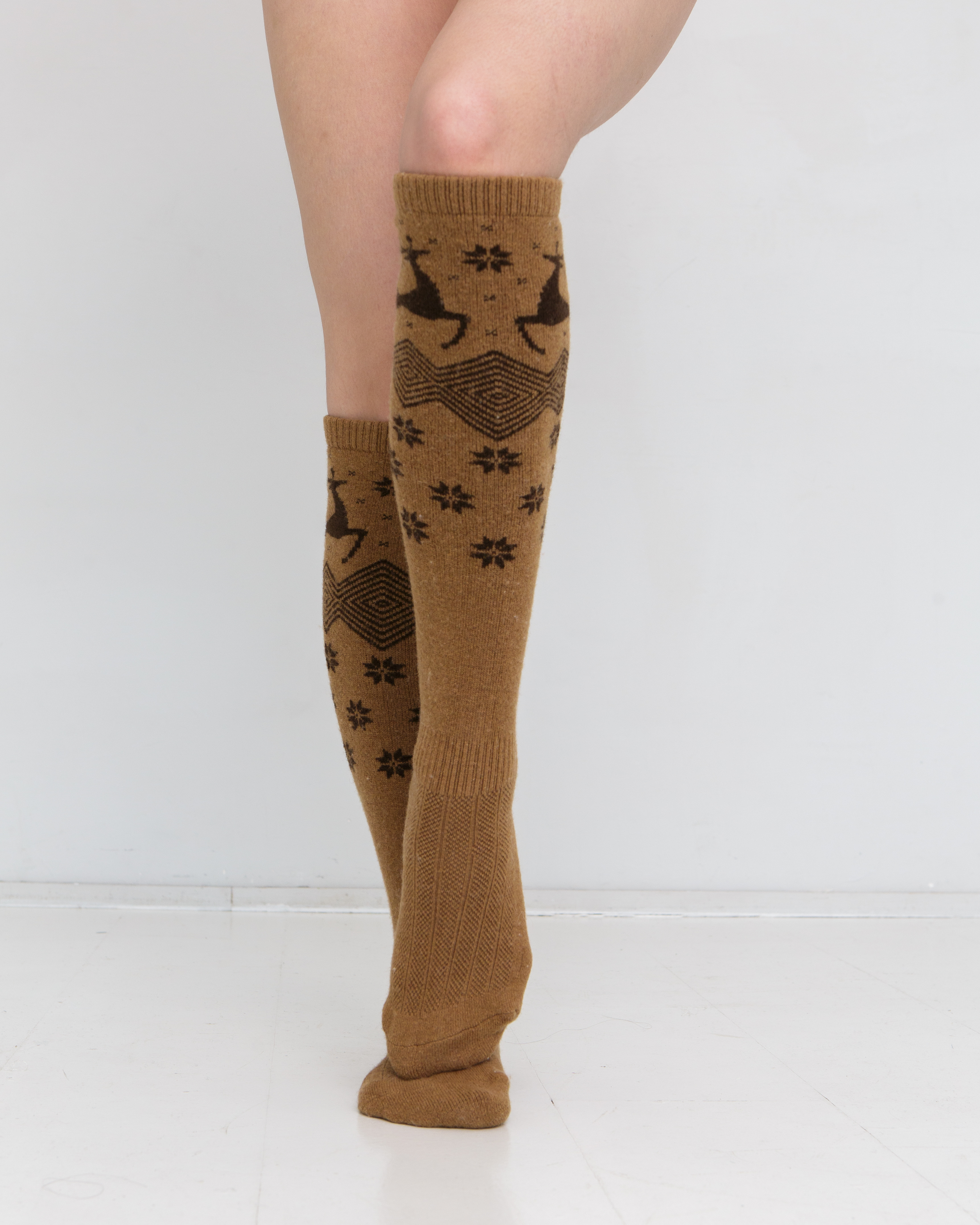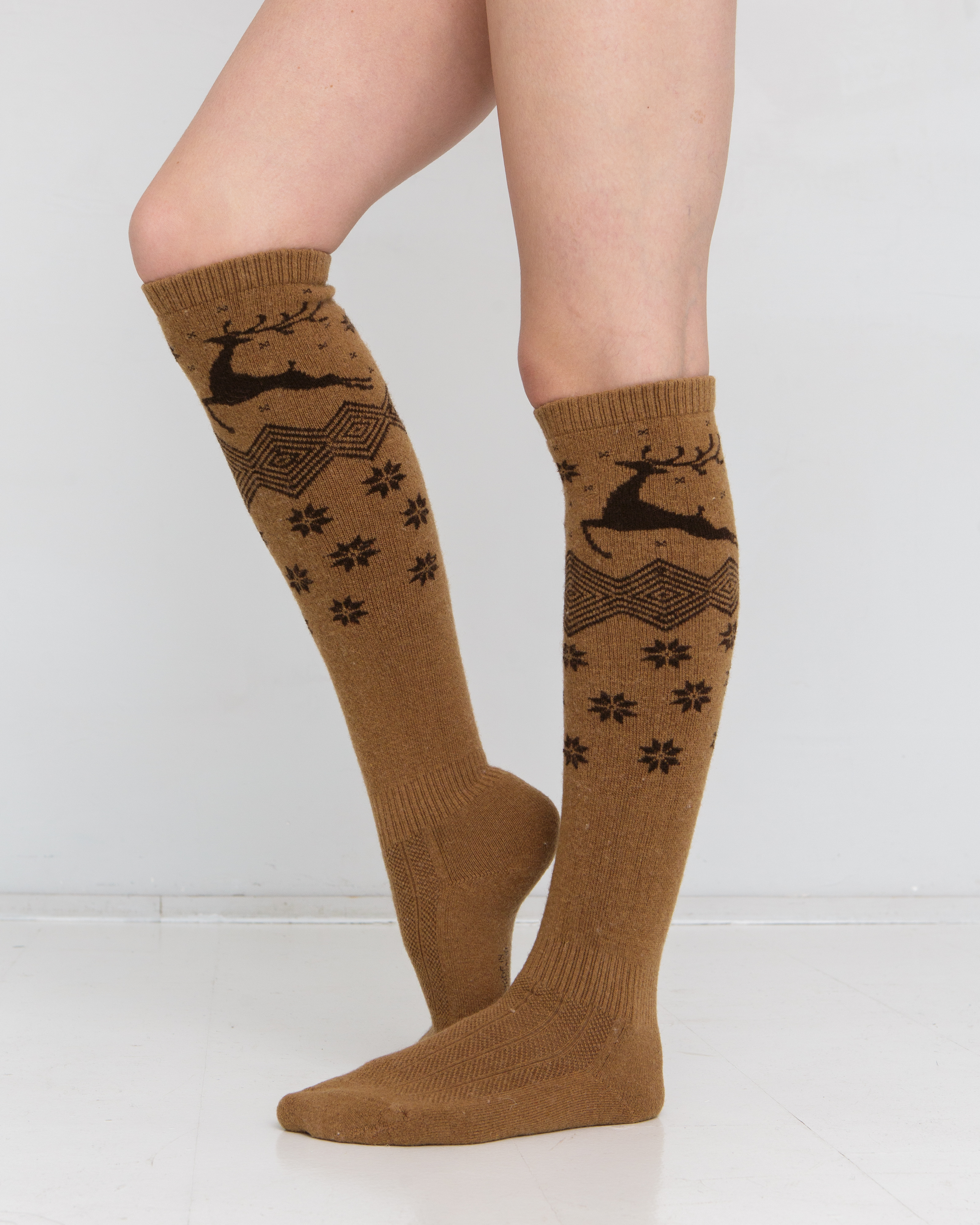Теплые гольфы из монгольской шерсти рыжие с рисунком