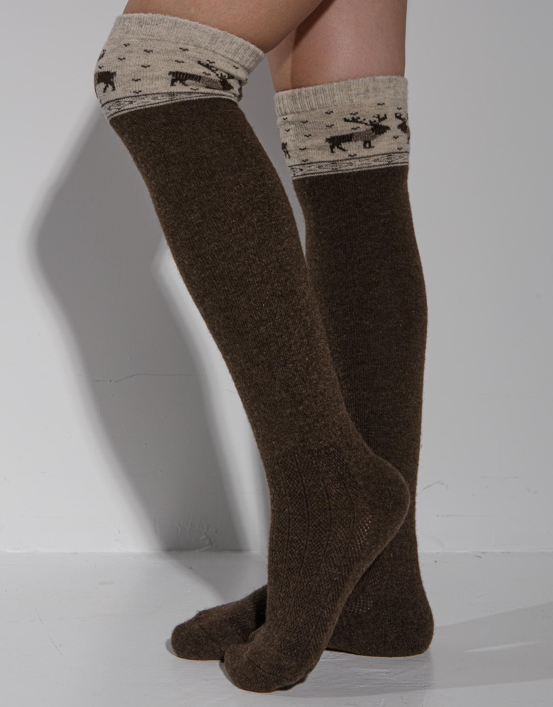 Теплые гольфы из 100% шерсти темно-коричневые с рисунком