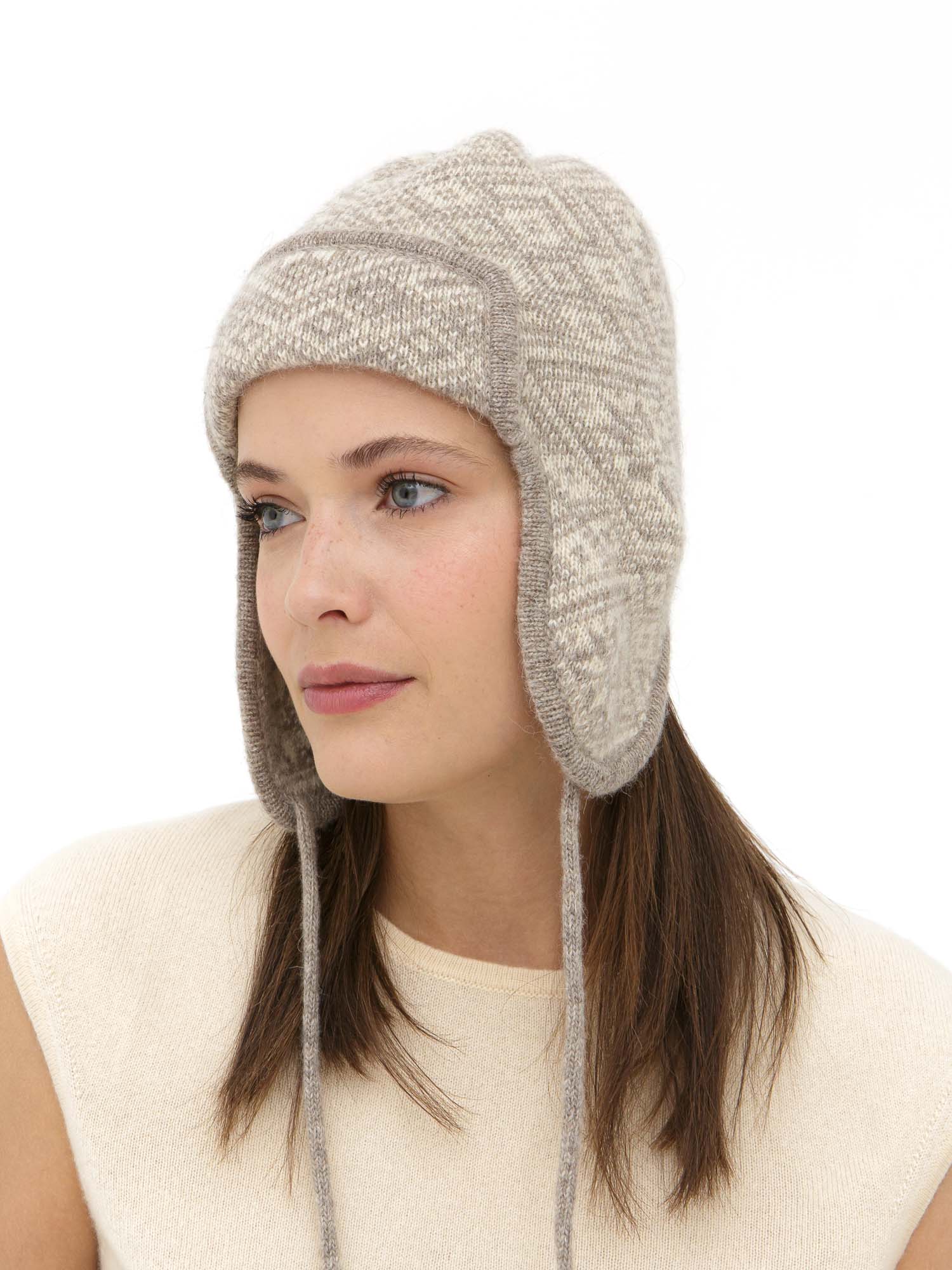 Модель плотно прилегает к голове, надёжно закрывая уши и защищая от холода. Завязки позволяют зафиксировать посадку для дополнительного комфорта. Мягкая вязка обеспечивает удобство без излишнего давления.