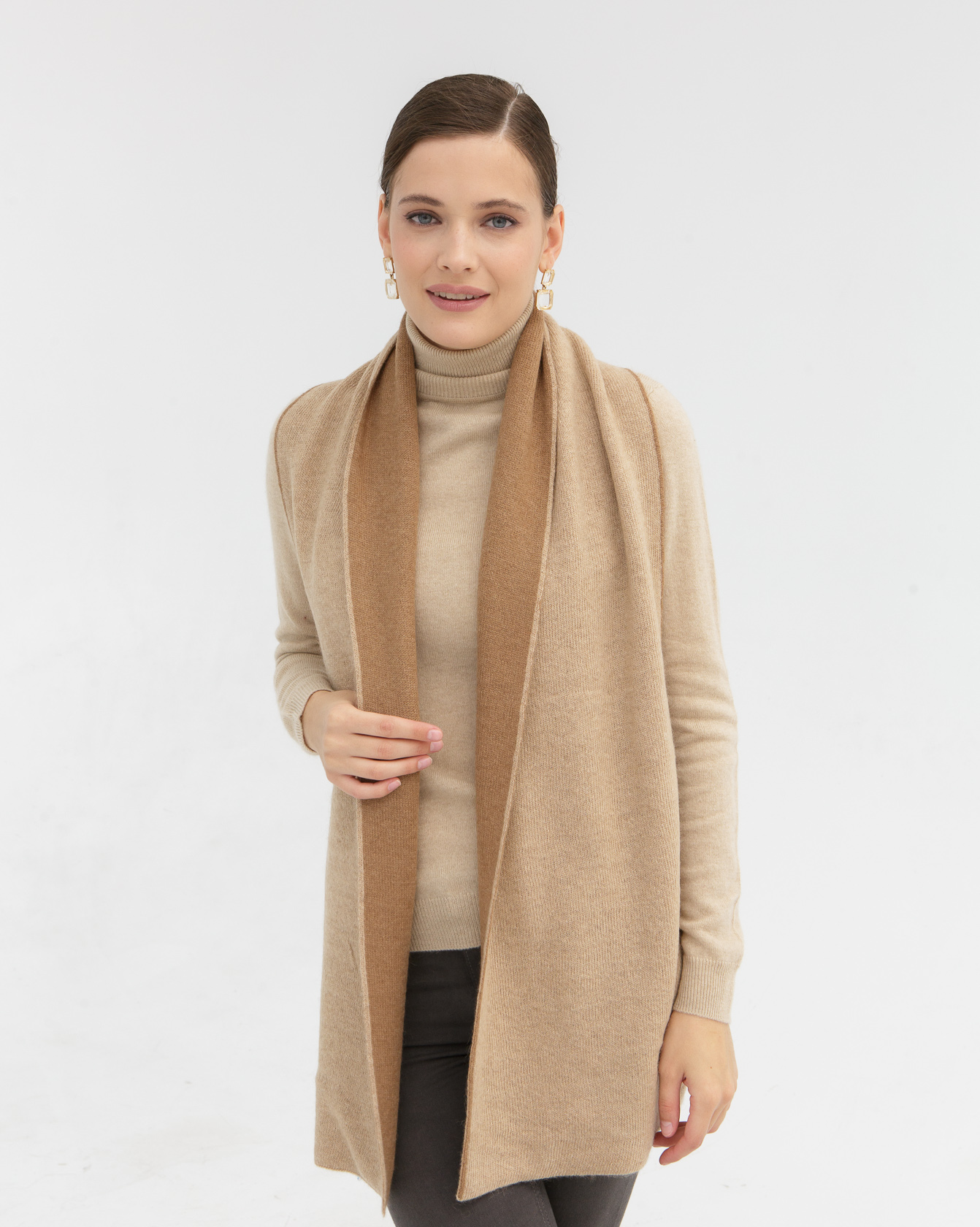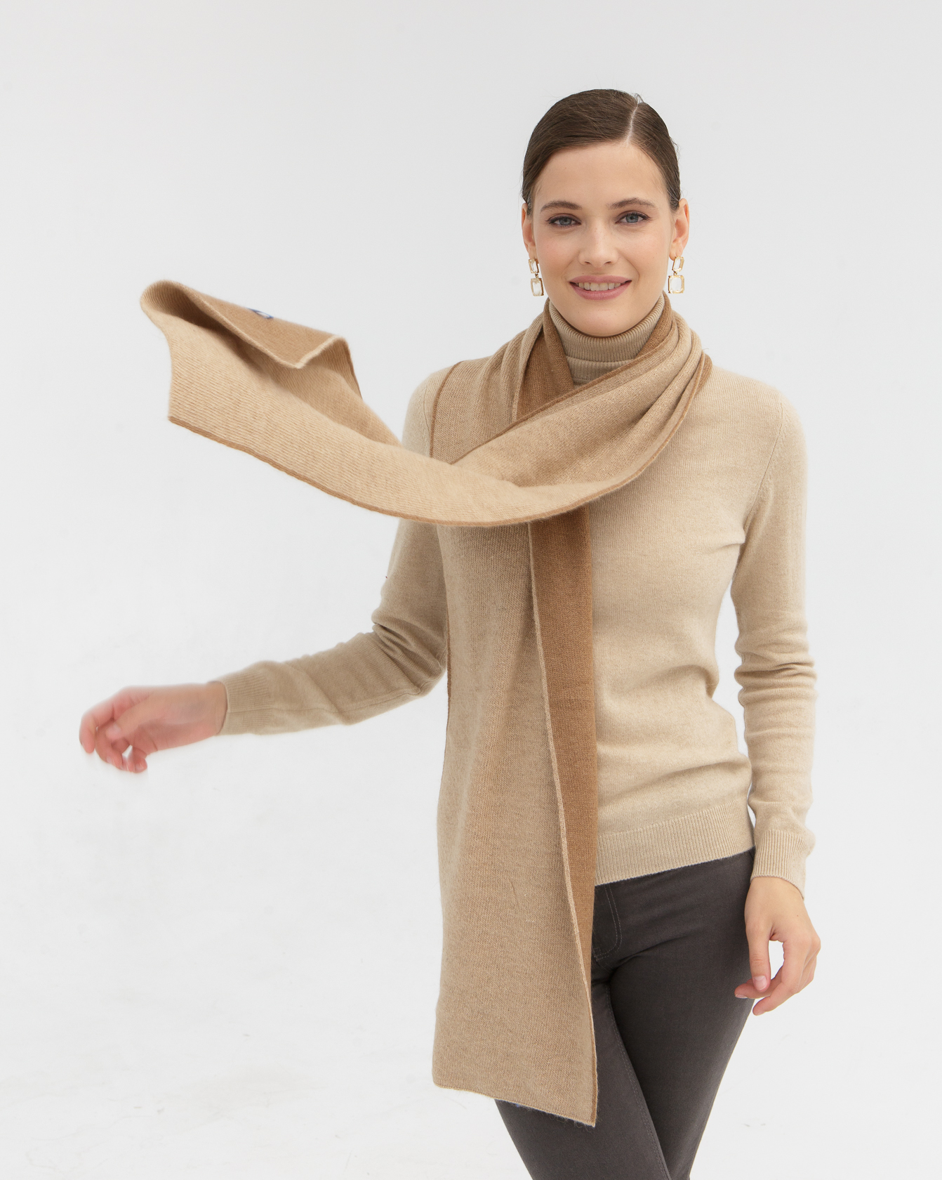 Легкий, мягкий и приятный к коже шарф хорошо драпируется и подходит для разных способов ношения. Универсальный аксессуар, который одинаково гармонично смотрится с пальто, куртками и трикотажными изделиями.