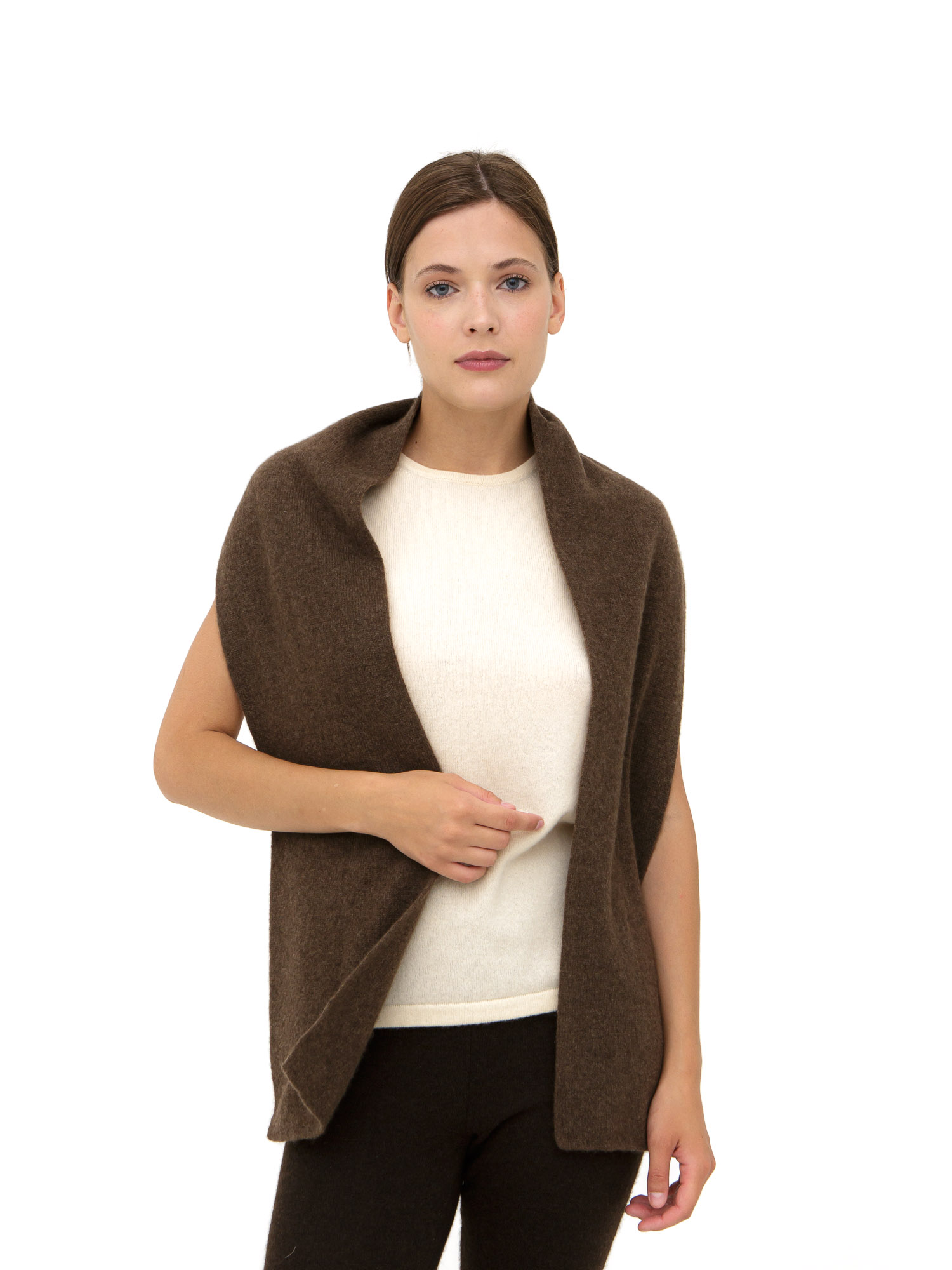 Классическая прямоугольная форма с лаконичной фактурной вязкой. Минималистичный дизайн подчёркивает натуральную текстуру материала и делает аксессуар универсальным для различных образов.