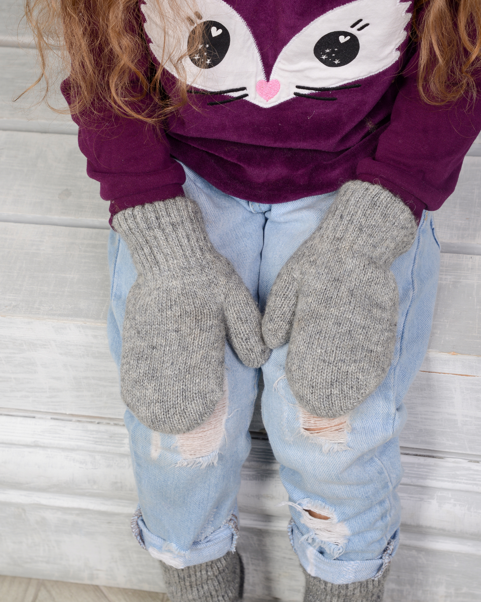 Детские варежки из монгольской шерсти серые