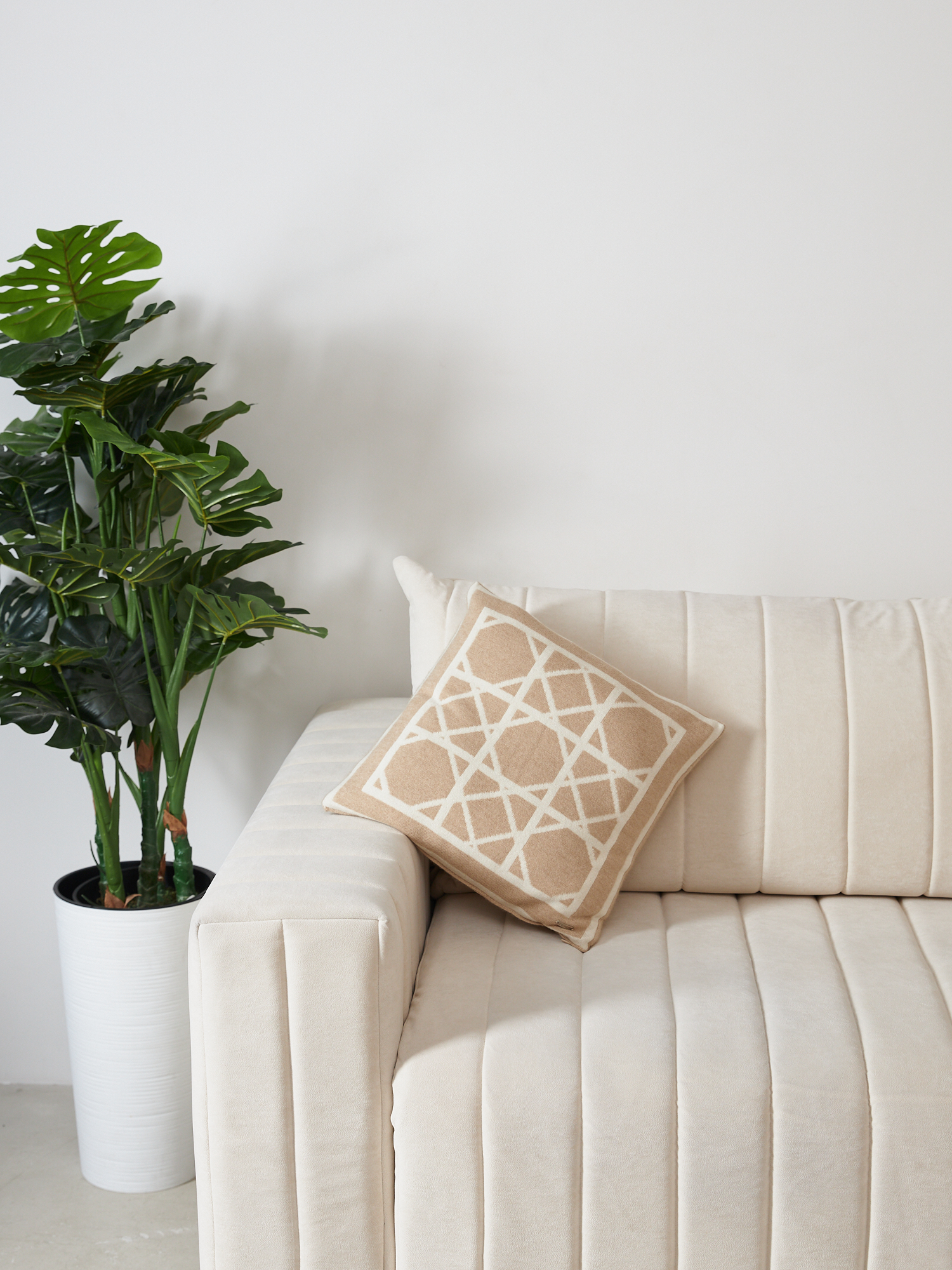 Почувствуйте мягкость, к которой хочется прикасаться снова и снова. Декоративная наволочка из кашемира в благородном бежевом оттенке с изящным геометрическим рисунком создает атмосферу уюта и спокойствия в интерьере. Натуральный кашемир отличается исключительной нежностью, легкостью и способностью сохранять комфортное тепло, превращая пространство в зону расслабления и комфорта. Практичная застежка на молнии делает использование удобным и аккуратным, сохраняя эстетичный внешний вид изделия.