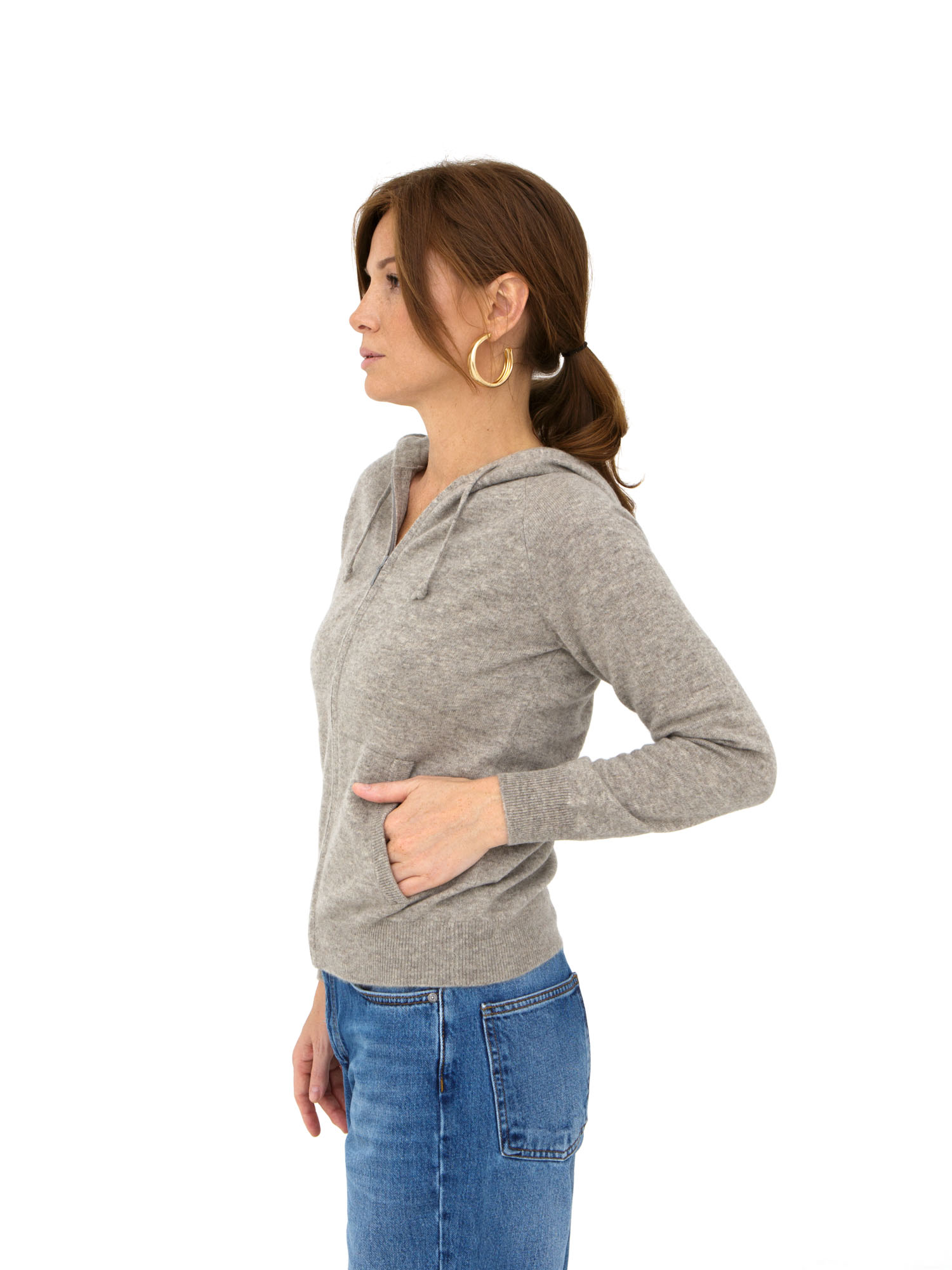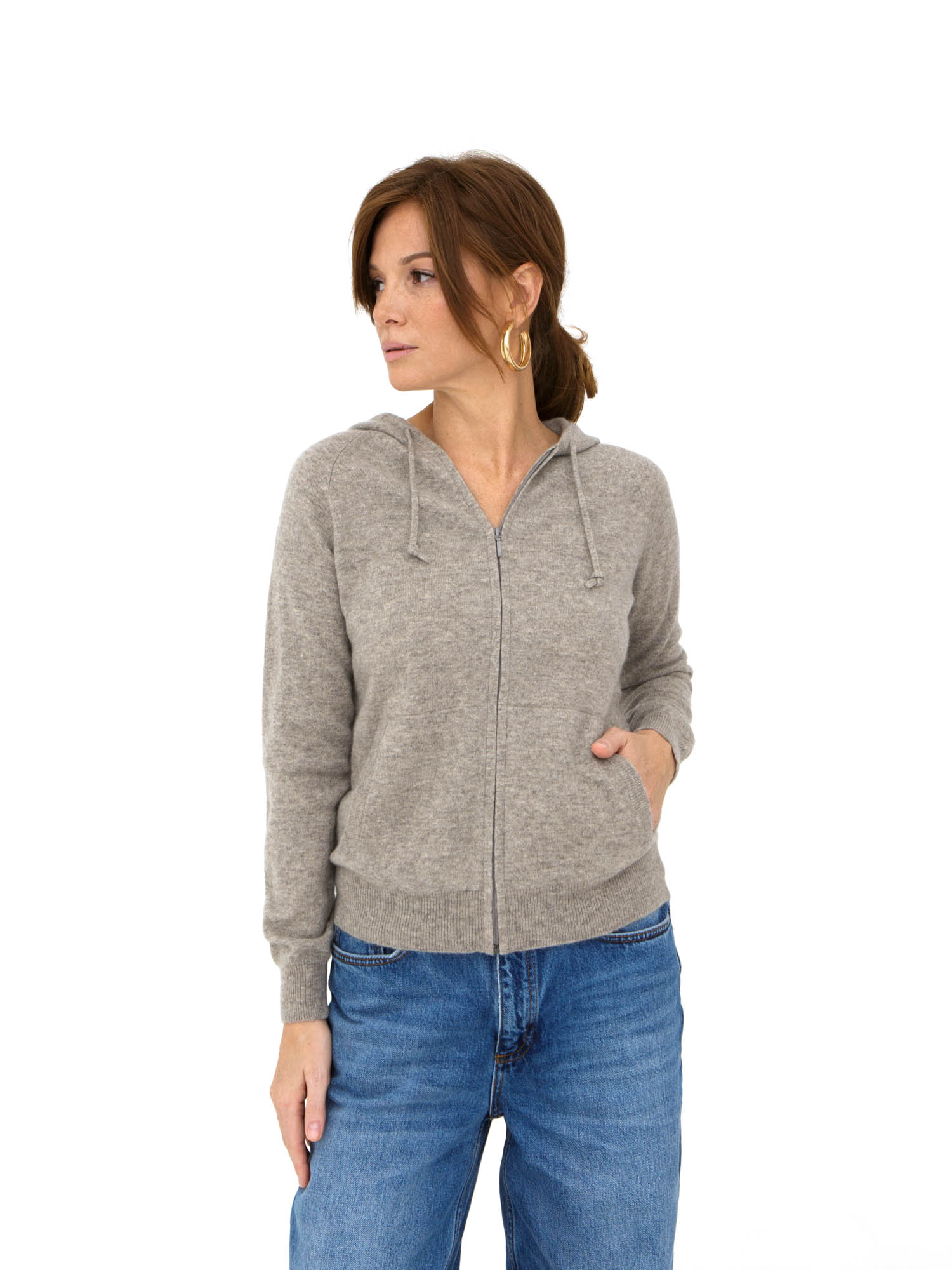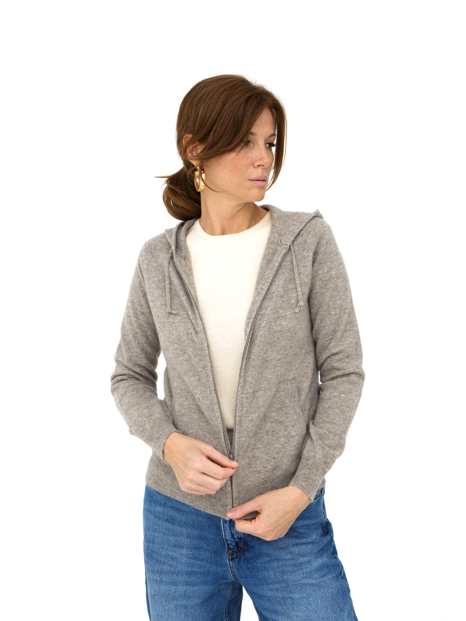 Модель выполнена в спортивно-элегантном стиле с капюшоном и центральной застёжкой на молнию. Гладкая вязка подчёркивает благородную текстуру натурального материала и делает изделие универсальным.