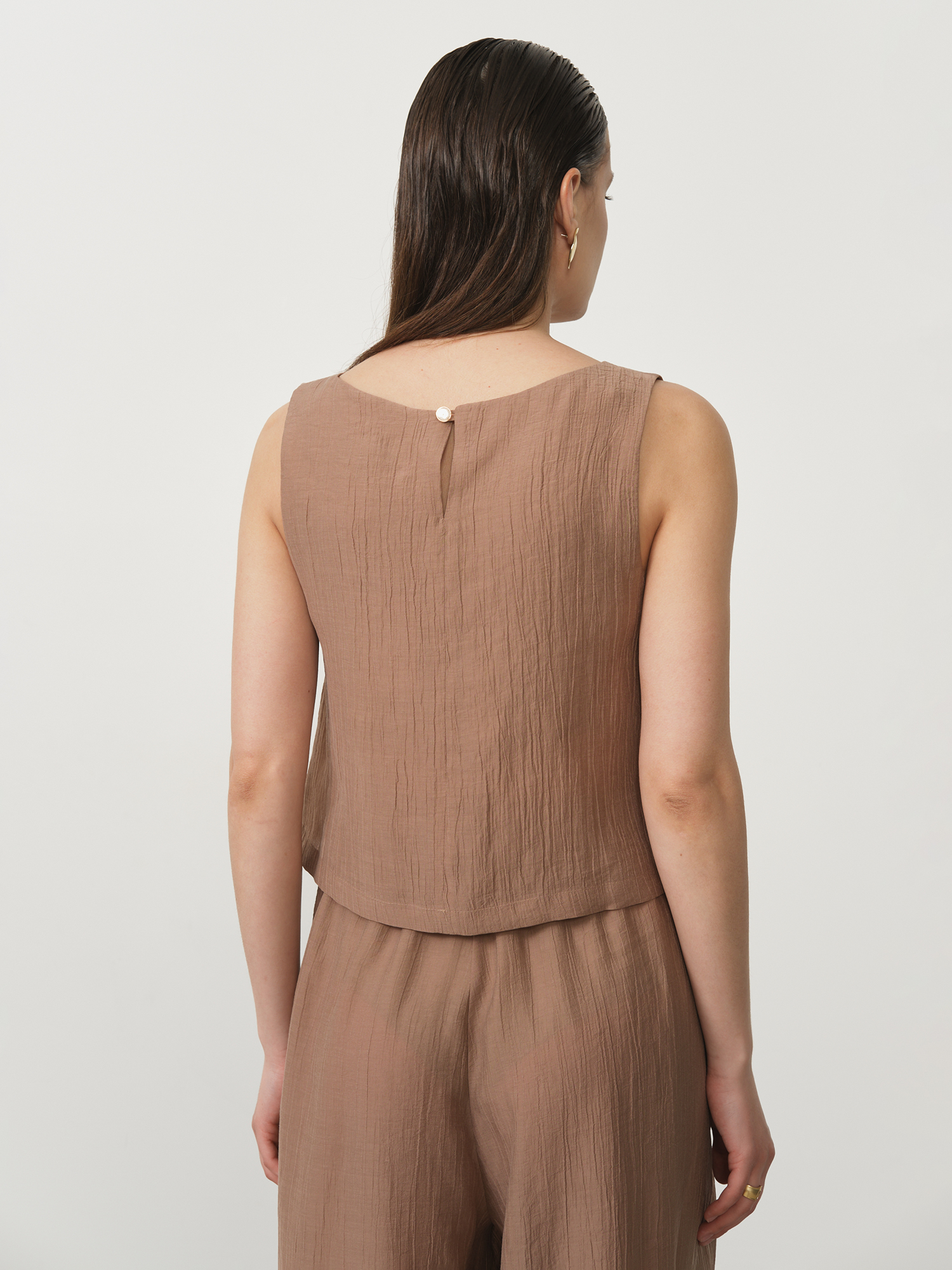 Свободный прямой силуэт без рукавов. Минималистичный крой делает модель универсальной и легко сочетаемой.