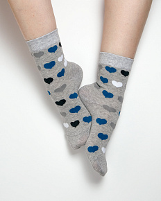 Хлопковые носки серого цвета с ярким разноцветным принтом в виде облаков придадут вашему образу стильный и необычный акцент. Изготовлены из мягкого и дышащего материала, обеспечивающего комфорт и свежесть ног в течение всего дня. Эластичная манжета надежно удерживает носки на ноге, не сдавливая и не вызывая дискомфорта. Идеально подойдут для повседневной носки как дома, так и на прогулке. Универсальный серый цвет легко сочетается с различными стилями и оттенками одежды.