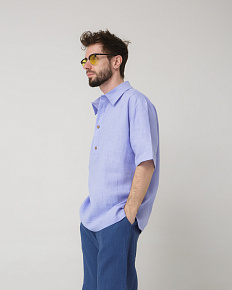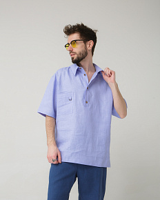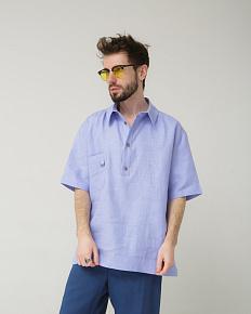 Рубашка льняная поло лаванда 26012