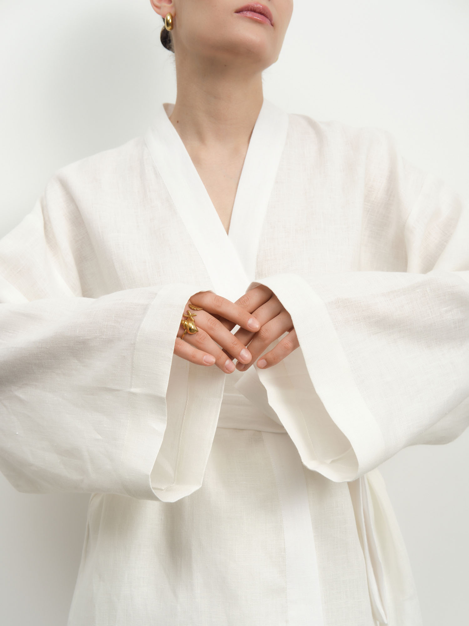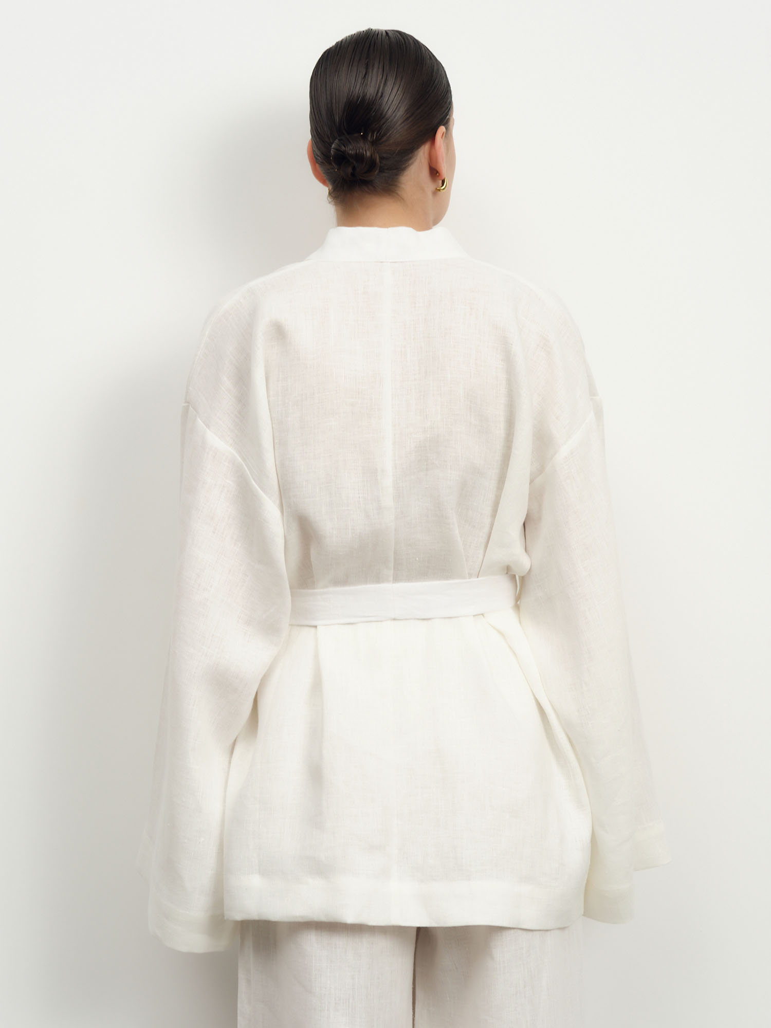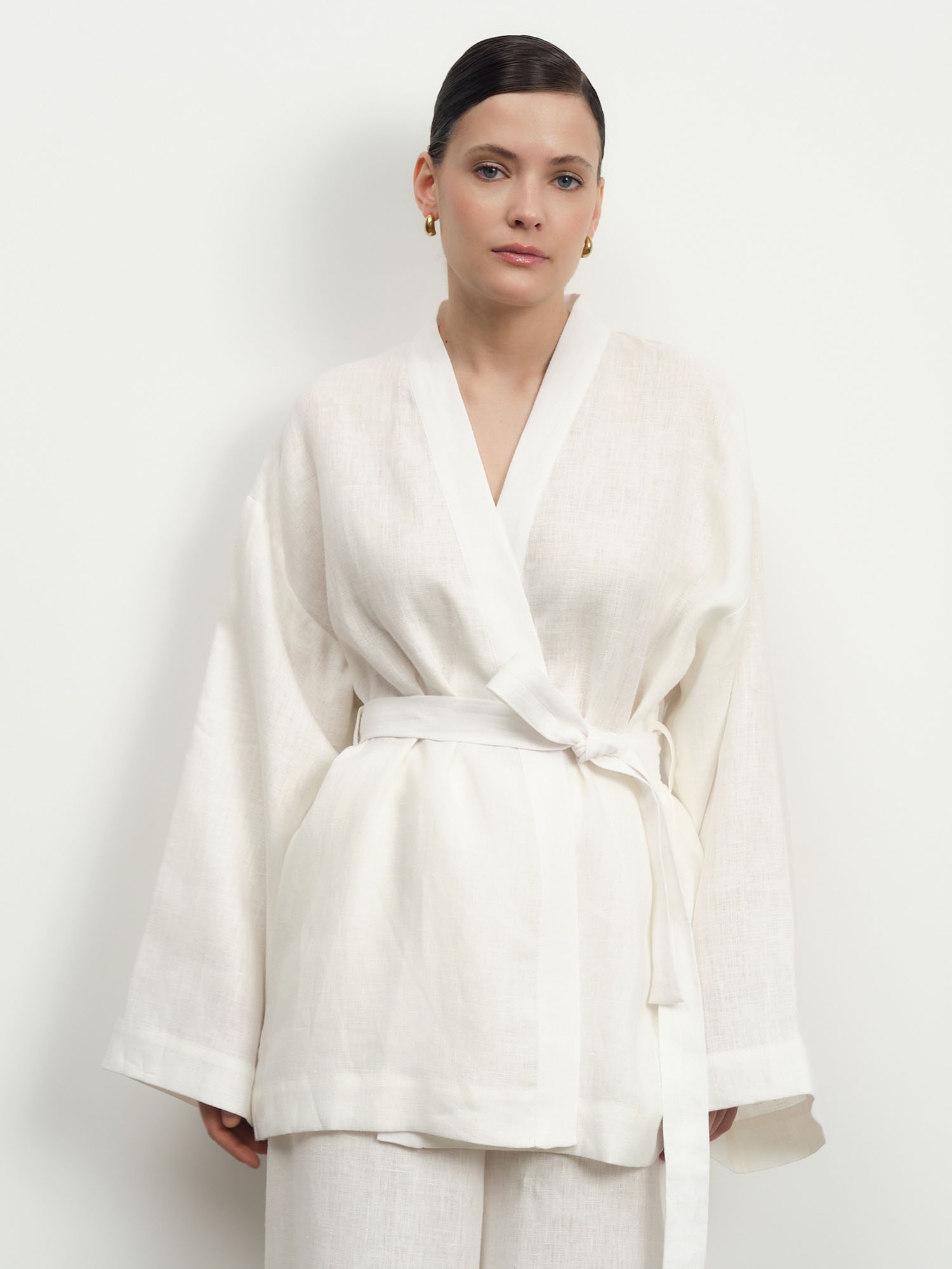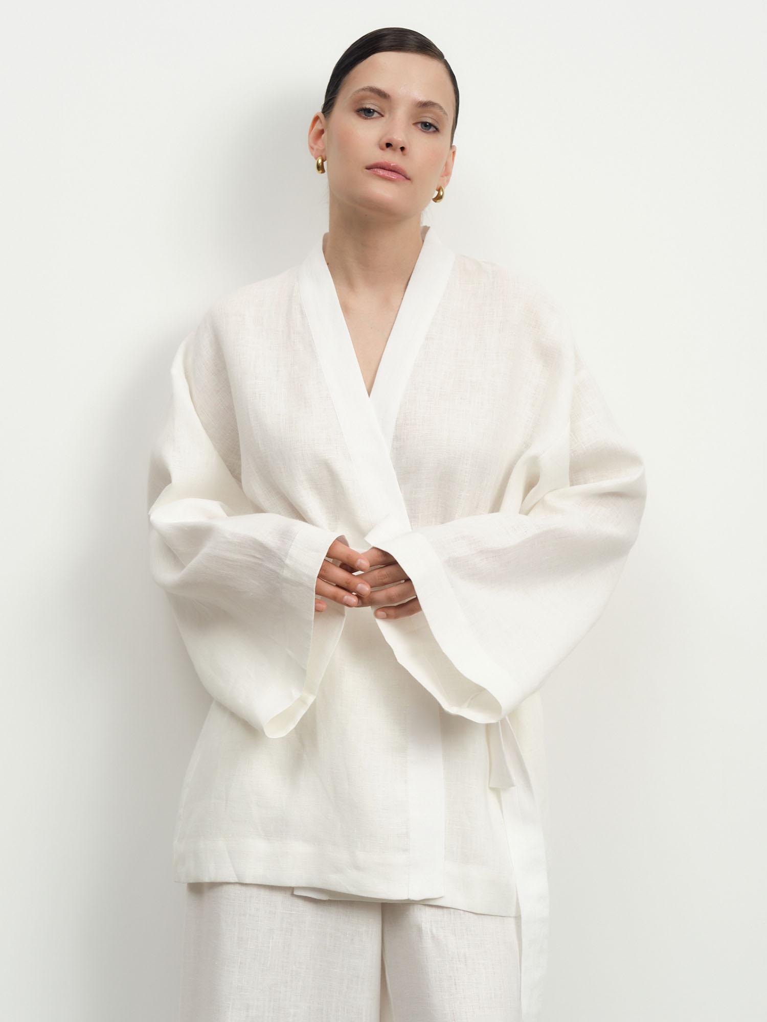 Жакет-кимоно из льна — стильная и универсальная модель в духе минимализма, сочетающая комфорт и элегантность. Идеально подходит для создания расслабленных и современных образов.