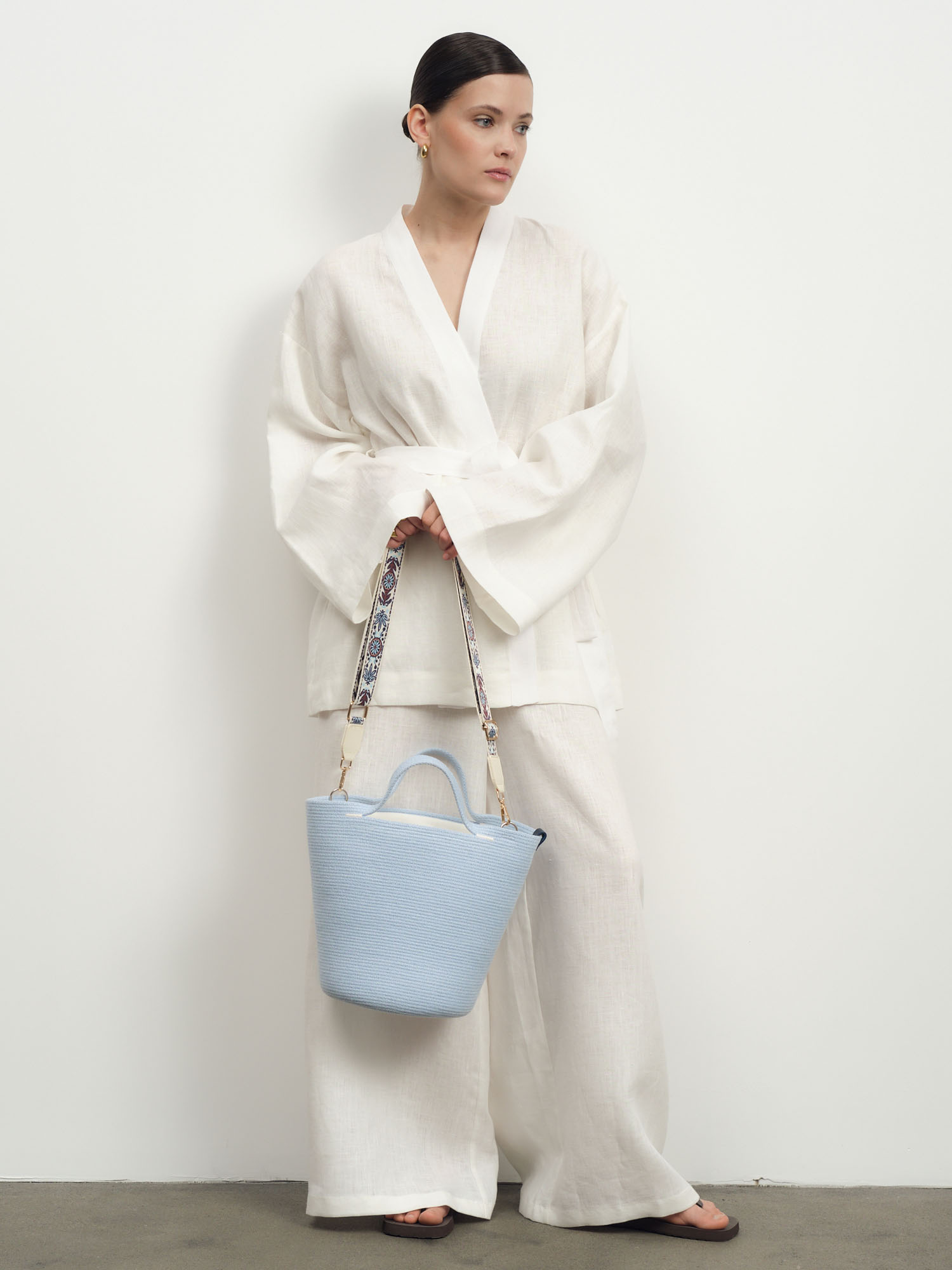 Отлично сочетается с льняными брюками, юбками и топами. Подходит для повседневных образов, отдыха и летних комплектов.