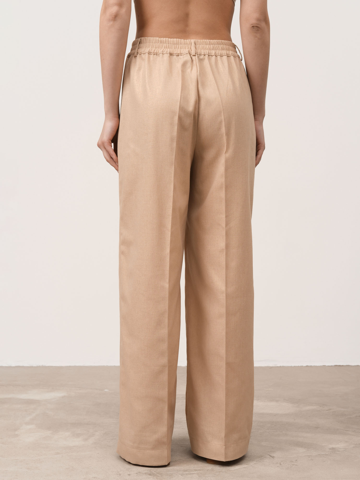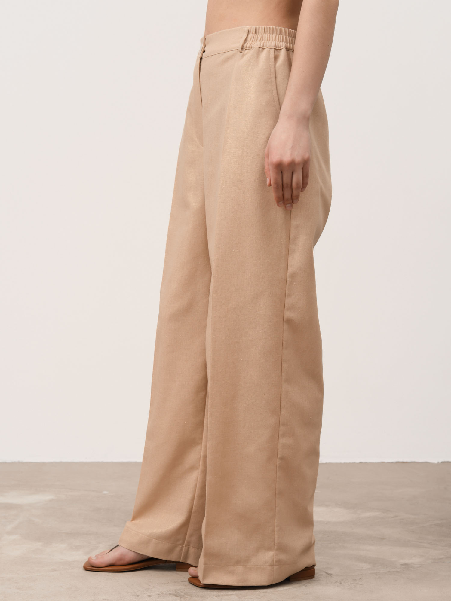 Шикарный золотистый оттенок! Брюки из натурального льна, очень легкие и комфортные. Ткань приятная на ощупь, не раздражает кожу.