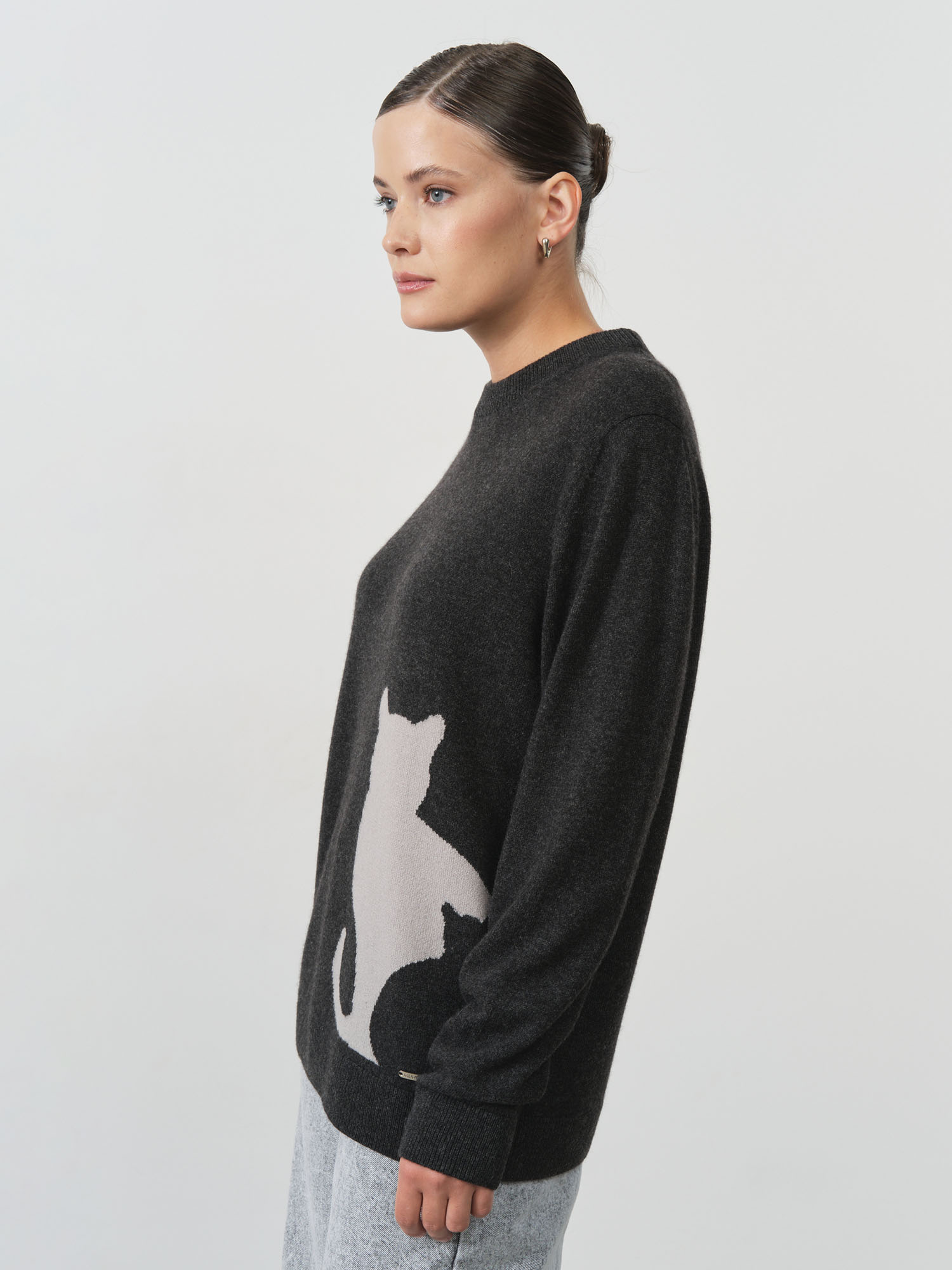 Свободный силуэт с классическим круглым вырезом. Контрастный жаккардовый рисунок добавляет индивидуальности и делает модель акцентной.