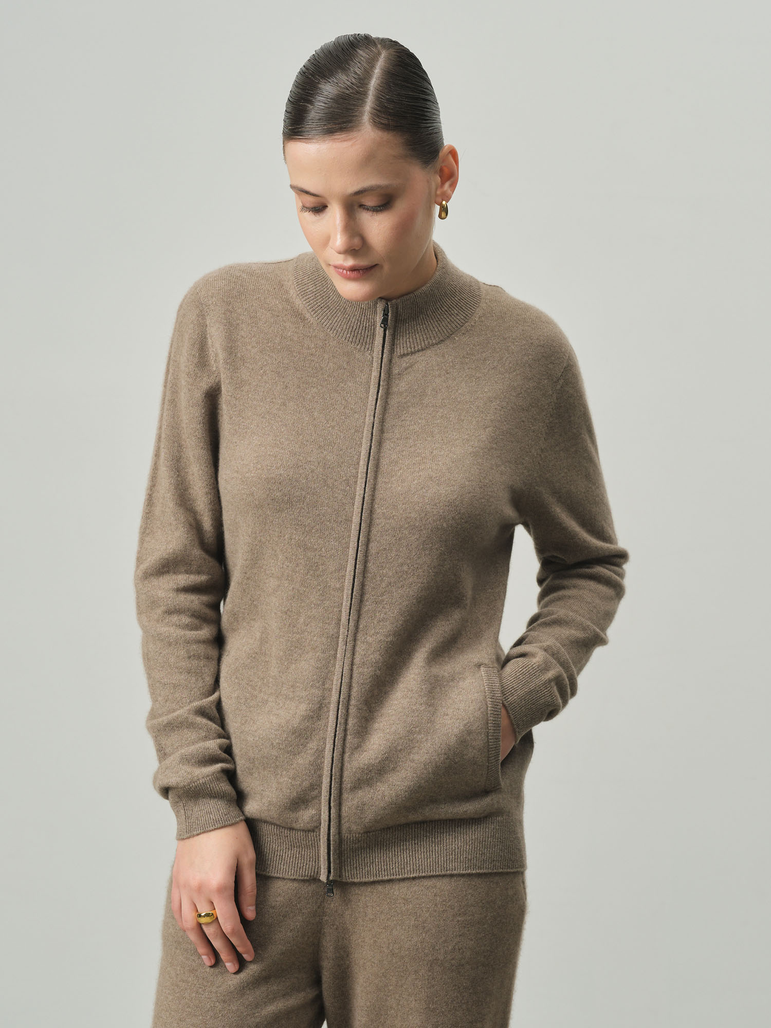 Модель выполнена с круглой горловиной и центральной застёжкой на молнию. Гладкая аккуратная вязка подчёркивает благородную текстуру материала. Минималистичный крой создаёт современный и универсальный силуэт.
