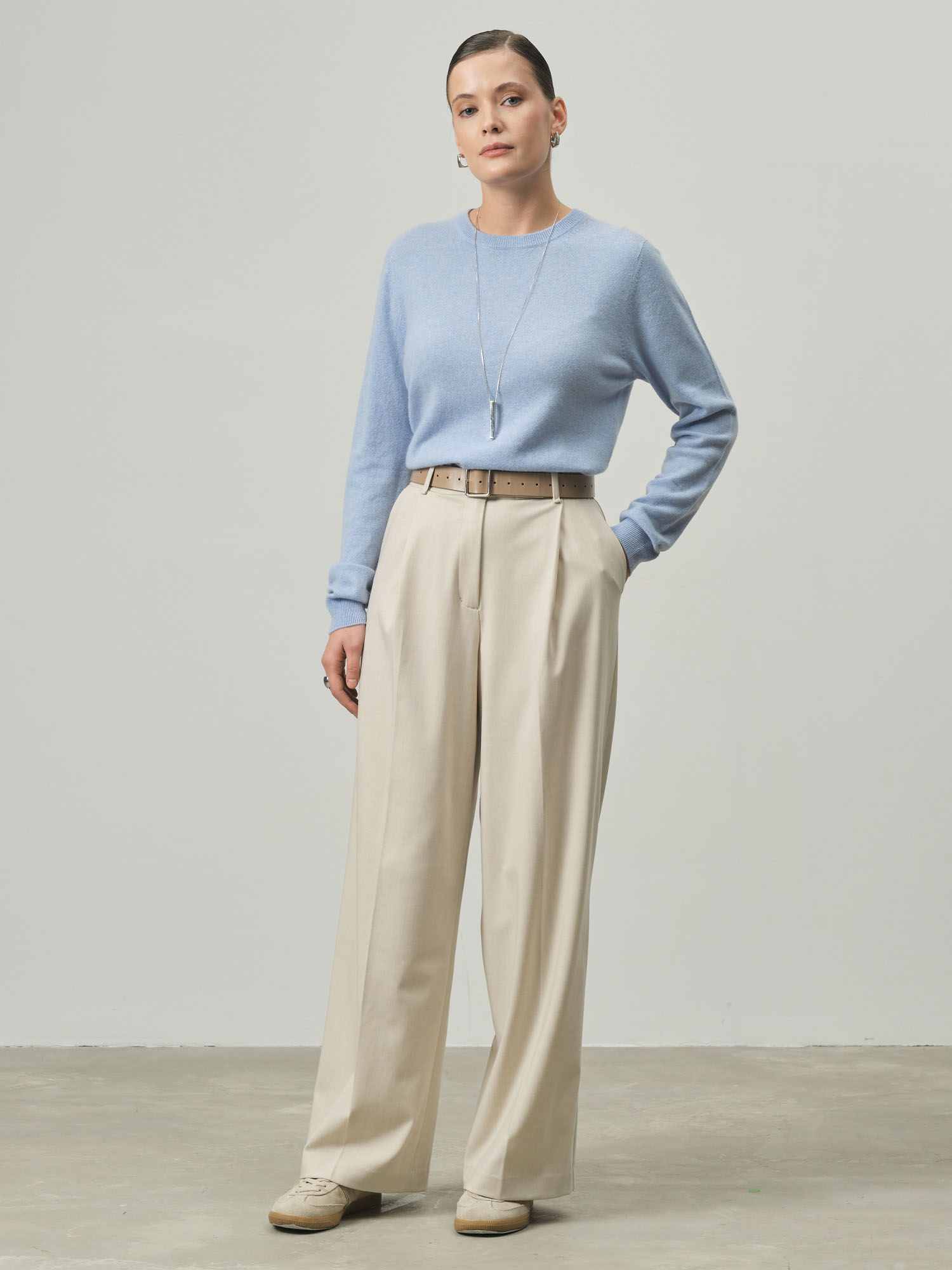 Комфортная посадка мягко повторяет линии фигуры и не сковывает движения. Нежный кашемир обеспечивает лёгкость, тепло и приятные ощущения при носке в течение всего дня.