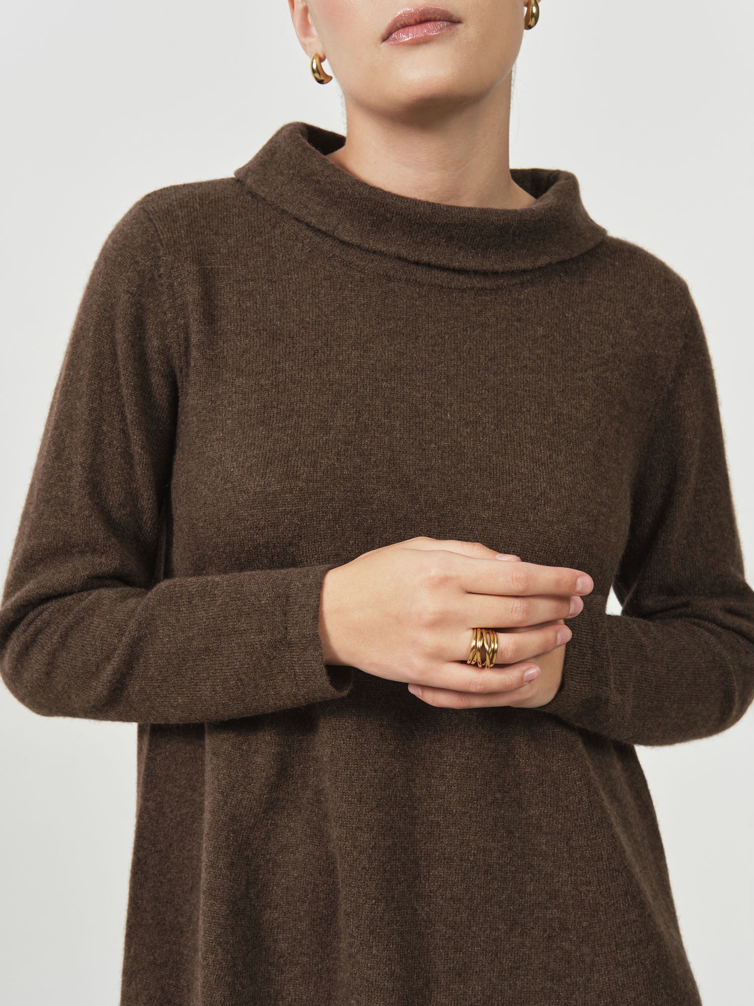 Платье из пуха яка — уютная и элегантная модель, идеально подходящая для прохладного сезона. Свободный силуэт и мягкая фактура создают расслабленный, но стильный образ на каждый день.