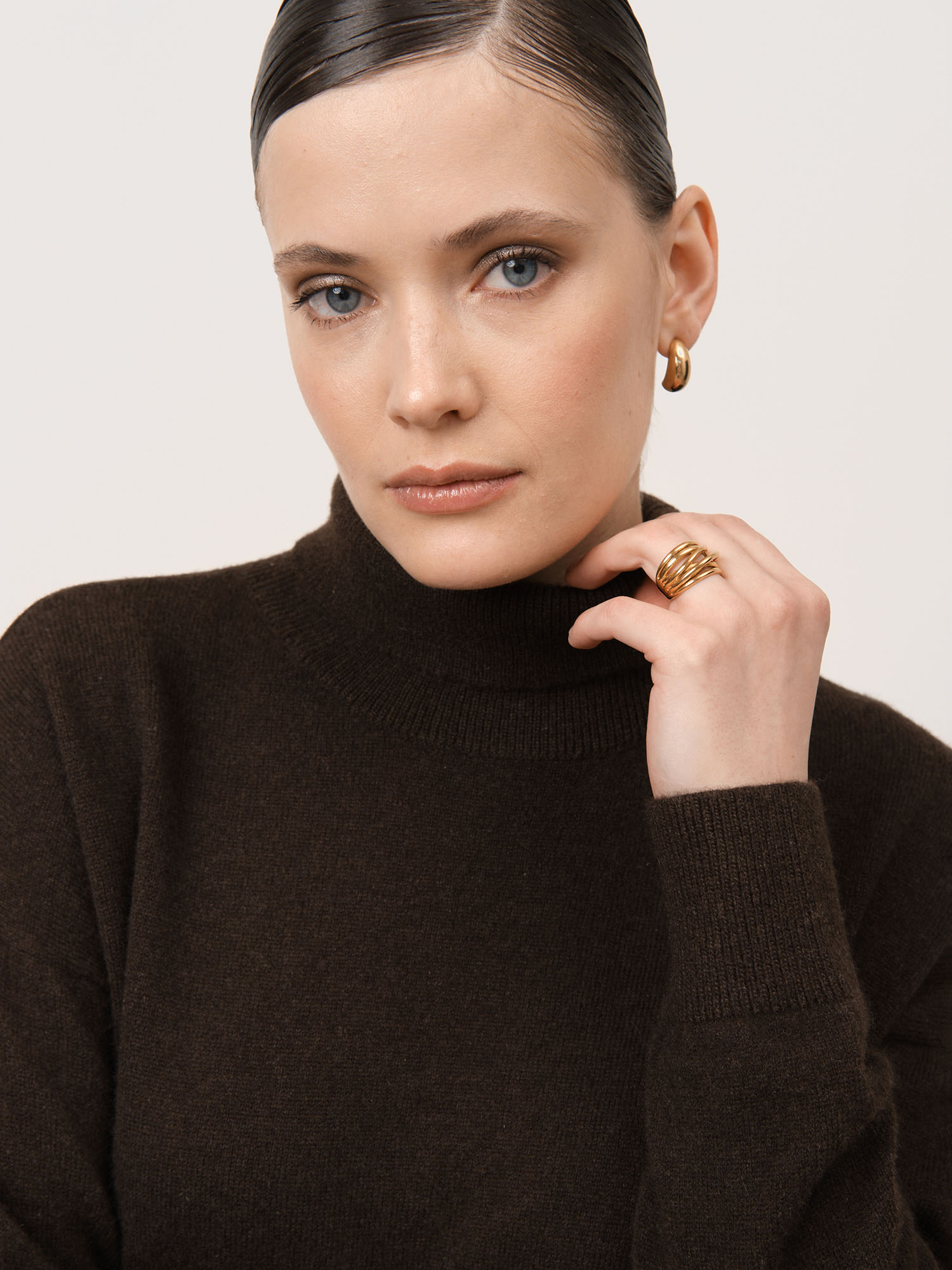 Высокий воротник для дополнительного тепла, аккуратная трикотажная вязка, мягкая линия плеч и удобная длина. Качественная обработка краёв обеспечивает долговечность изделия.